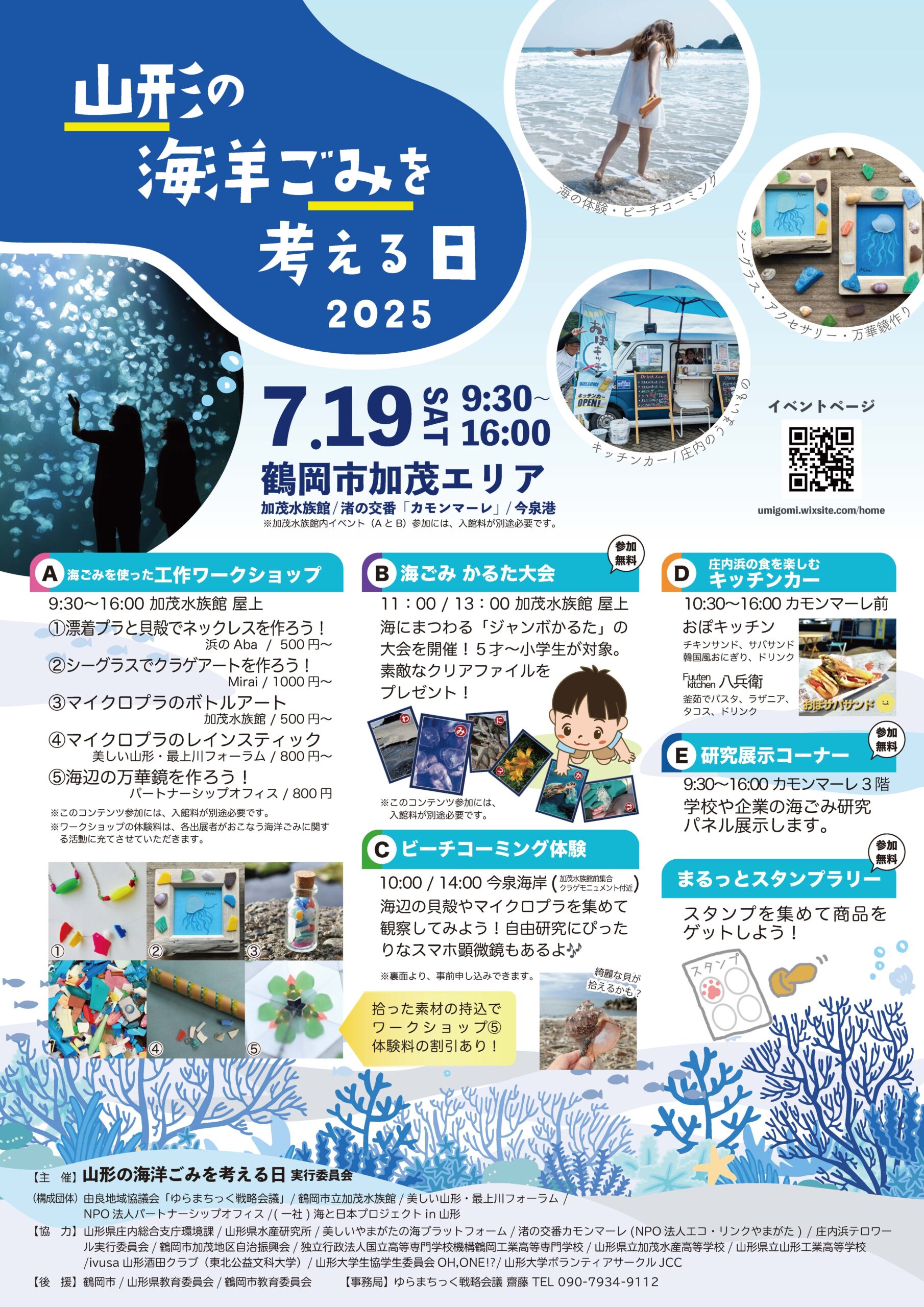 【協力】山形県庄内総合支庁環境課/山形県水産研究所/美しいやまがたの海プラットフォーム/渚の交番カモンマーレ(NPO法人エコ・リンクやまがた) / 庄内浜テロワール実行委員会/鶴岡市加茂地区自治振興会/独立行政法人国立高等専門学校機構鶴岡工業高等専門学校/山形県立加茂水産高等学校/山形県立山形工業高等学校/ivusa山形酒田クラブ(東北公益文科大学)/山形大学生協学生委員会OH,ONE⁉/山形大学ボランティアサークルJCC