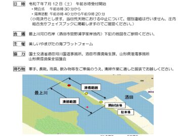 美しい景観を有する庄内海岸は、私たち山形県民の共有財産です。しかしながら、最上川河口の川岸に上流域から流れ着いたごみは、 増水により再び漂流し海岸漂着ごみとなり、海岸の景観を損ねるだけでなく大きな環境問題となっています。 […]
