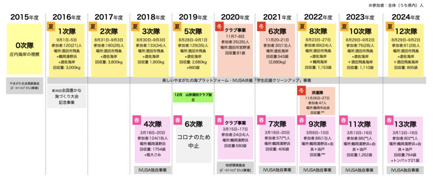 2016年9月1日から5日にかけて、山形県内外の学生約120名による海岸清掃活動を実施。なんと約3,000kgのごみを回収しました!